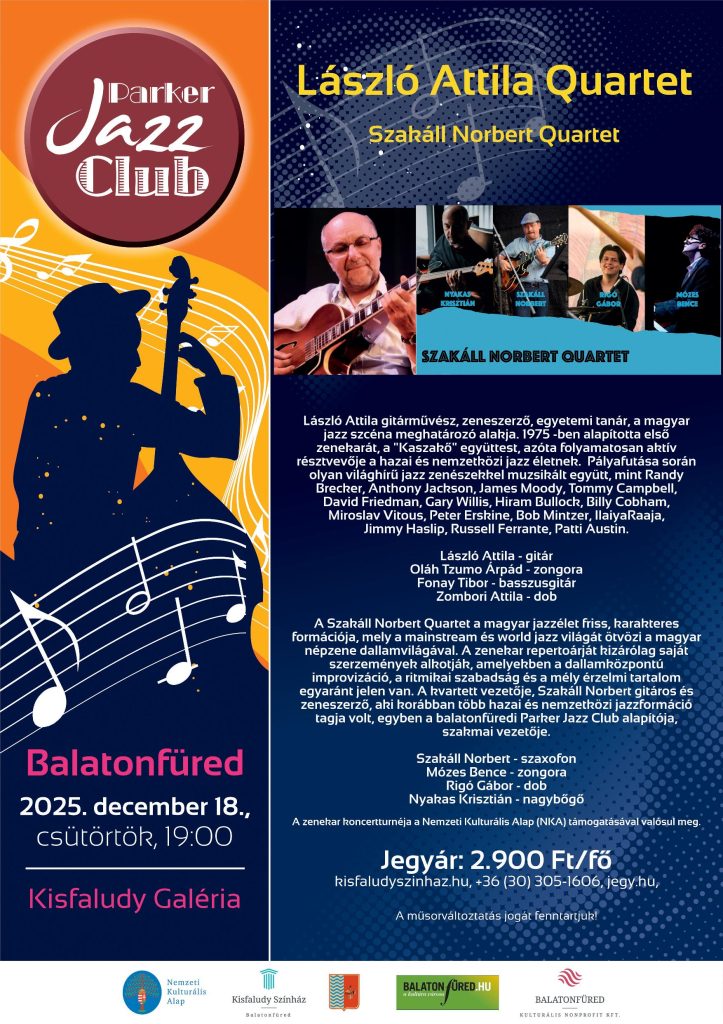 A Parker Jazz Club estjén két zenekar ad koncertet. Fellép a László Attila Quartet illetve a frissen alakult, Szakáll Norbert Quartet.