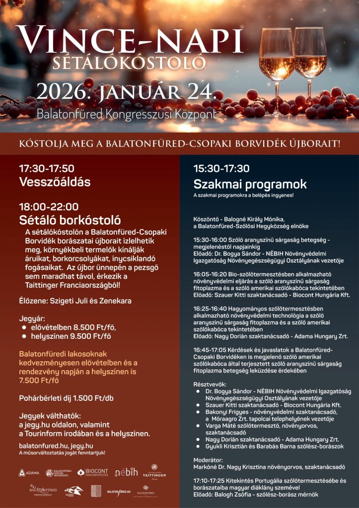 2026-01-24 15:00 - 2026-01-24 22:00A Balatonfüred-Csopaki Borvidék újborainak kóstolója és szakmai előadások.
